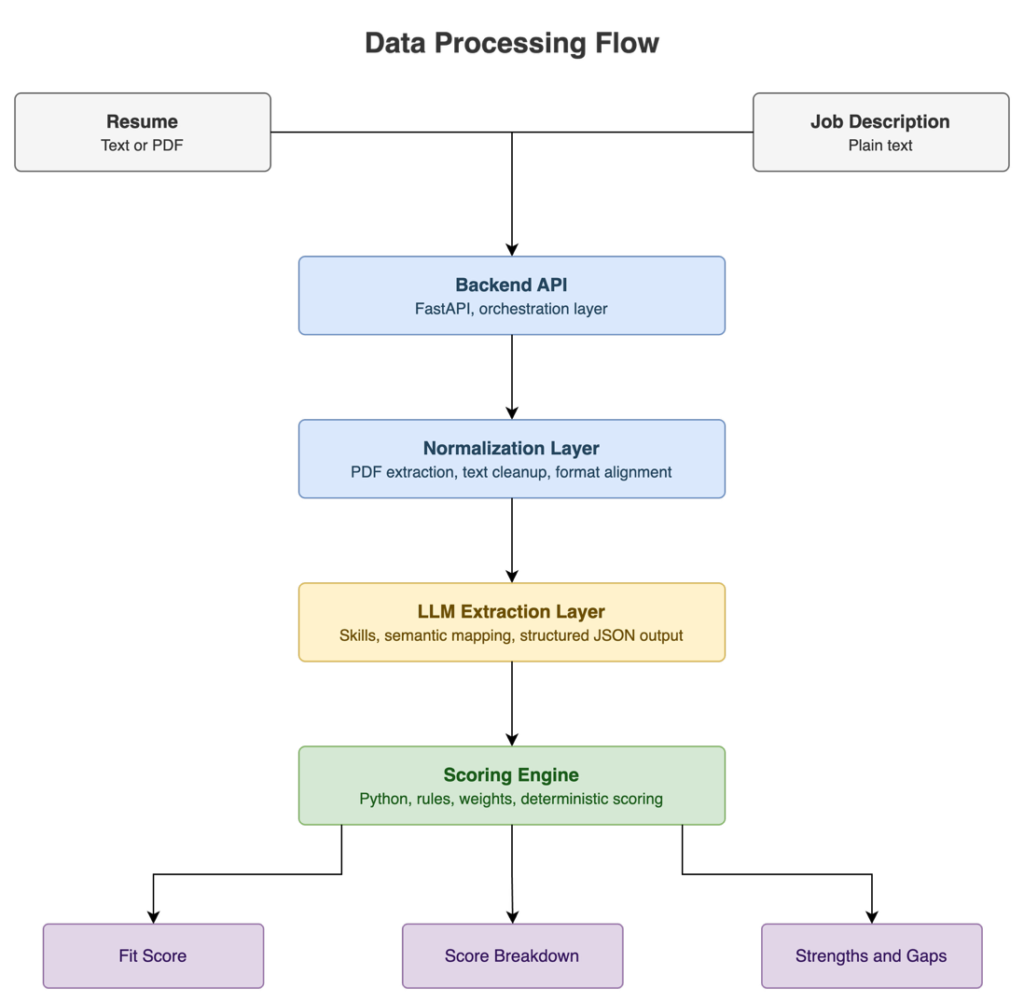 In Resume Fit Scorer, every component has a clear responsibility. Every architectural choice was made with a specific trade-off in mind. The most important design principle is to use LLMs for semantic reasoning while keeping decision-making under deterministic control. That boundary, between what the model interprets and what the engine decides, is where the system’s reliability comes from.